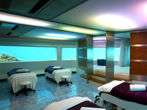 Not a whole underwater hotel, but luxury resort Huvafen Fushi does provide the world’s first underwater spa—the Lime.