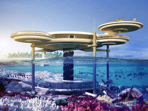 Deep set about 40ft under sea, this proposed hotel is meant to be accessed via elevators from the main island.