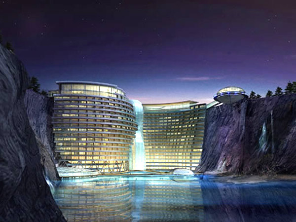 Talk about unique conceptualisation and this property comes right on top. The $555 million investment in this hotel backs what the Shimao Property Group terms as a ‘groundscraper’, considering the structure is set in an abandoned 100 meter deep quarry at the foot of Tianmashan.